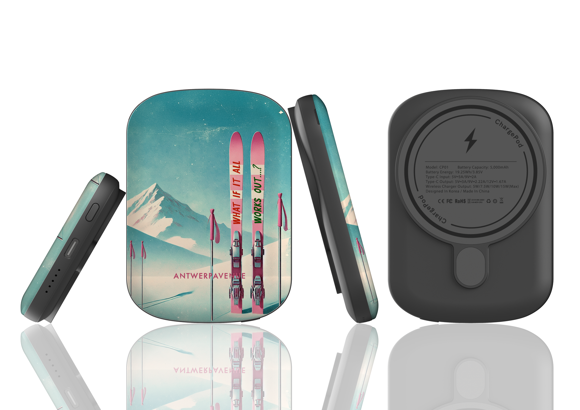 The shell is removable and interchangeable, allowing you to change the look of your powerbank whenever you want.